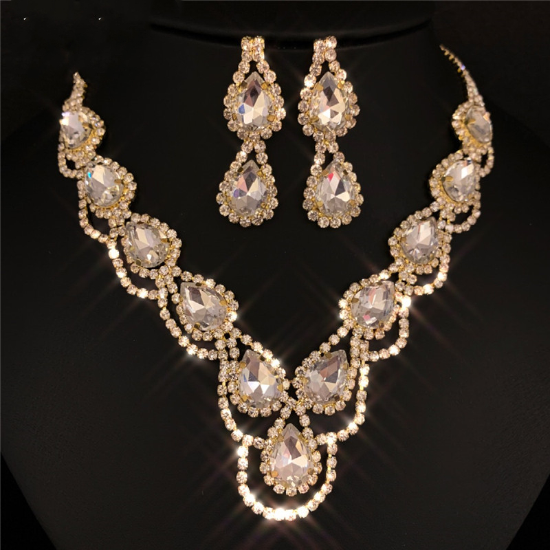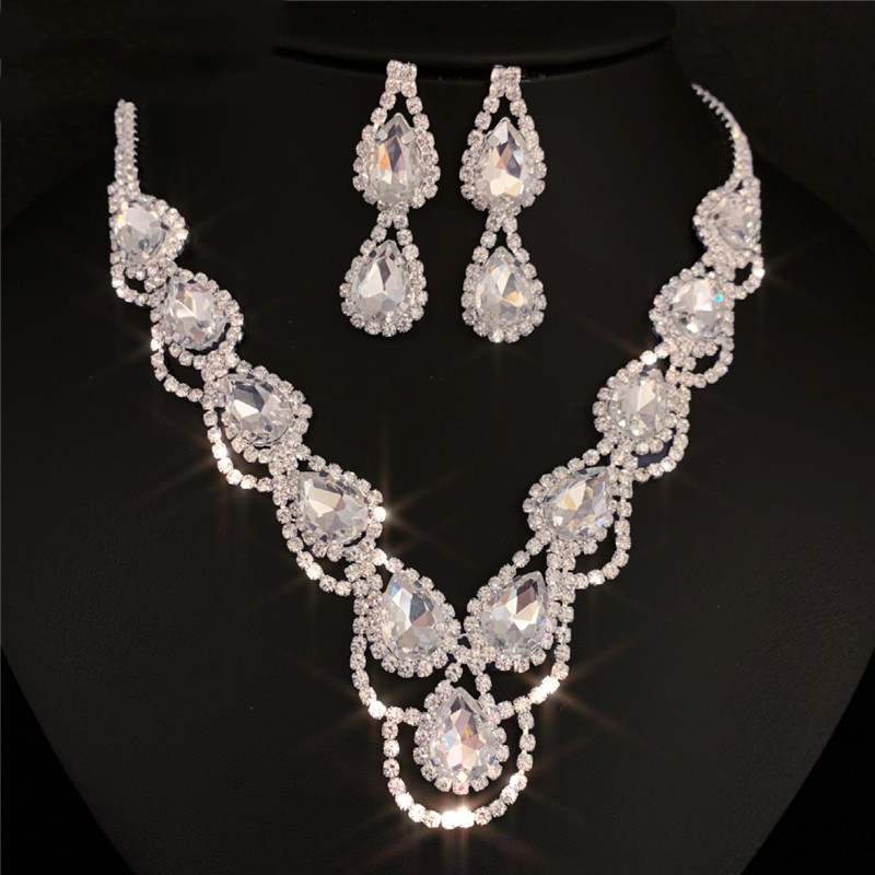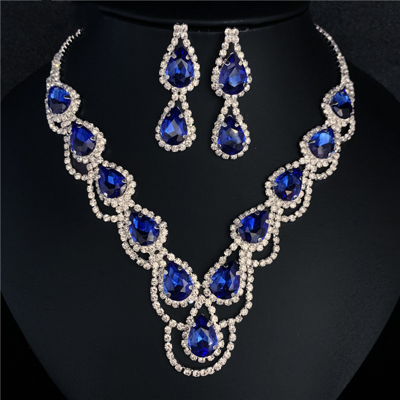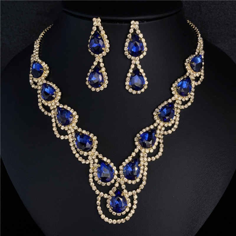 Charm Bridal Earrings Necklace Two-piece Multi-Color Crystal