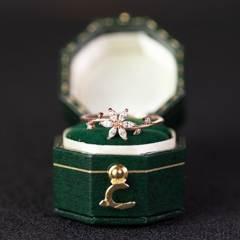 Floral Wedding Band For Women 18K 14K Gold S925 Silver Diamond Ring